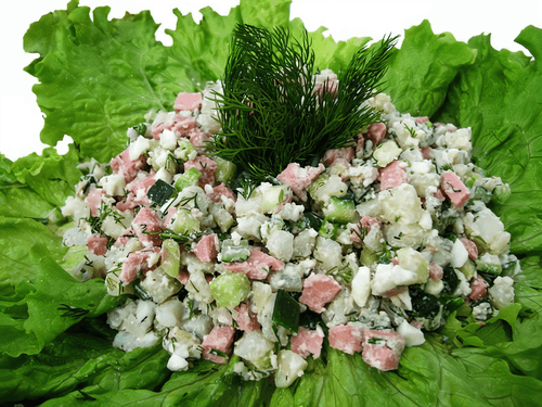 Следующим слоем выложить измельченный чернослив, затем — тертый на крупной терке сыр. Посыпать грецкими орехами. Сверху смазать майонезом.