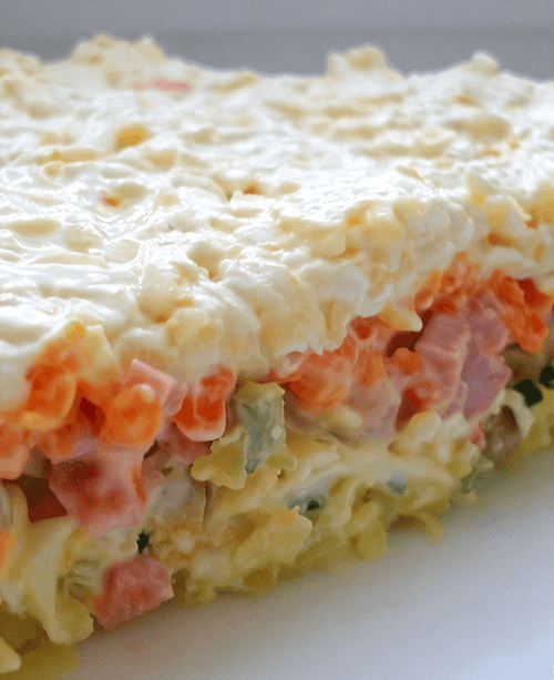 5 слой — нарезанная кубиками ветчина.