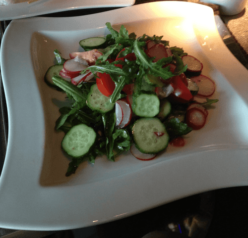 Рукколу и зеленый салат промыть и обсушить. Рукколу нарезать не надо. Зеленый салат порвать руками.