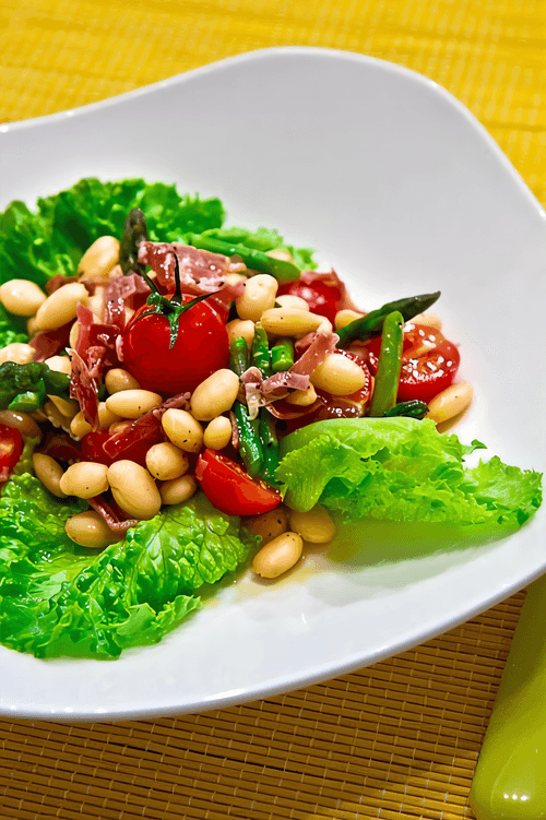 Салат с фасолью и хамоном