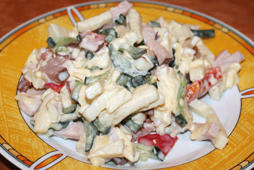 Салат с сыром, яблоком и ветчиной