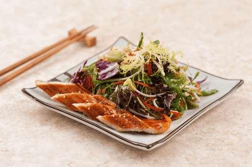 Микс салат с водорослями чука и жареным угрем унаги — это утонченное сочетание свежести и глубины вкуса. Вдохновленный китайской кухней, этот салат балансирует хрустящие овощи, пряную заправку и нежный, карамелизированный угорь. Чука — традиционные морские водоросли — придают блюду легкую йодистую нотку, а соус с лаймом, имбирем и соевым соусом подчеркивает его экзотичность. Это блюдо не только радует вкусовые рецепторы, но и является источником полезных микроэлементов и витаминов. Прекрасно подходит как изысканная закуска или легкий ужин, а его красочная подача сделает любую трапезу особенной.