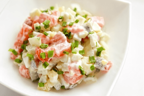 Салат с семгой и перепелиными яйцами — это утонченное сочетание нежности и свежести. Его корни уходят в русскую кухню, где семга ценится за мягкий вкус, а перепелиные яйца — за питательность. Хрустящие огурцы придают блюду легкость, а ароматный укроп и зеленый лук добавляют свежие нотки. Заправленный сметаной, он становится нежным и гармоничным. Идеальный выбор для праздничного стола или легкого ужина, этот салат покоряет своей простотой и изысканностью.