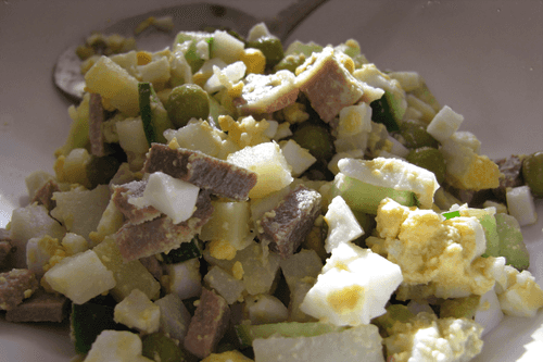 Оливье по-весеннему с языком – это утонченный вариант любимого салата, который привносит нотки свежести и изысканности. Его корни уходят в югославскую кухню, где традиции соединяют насыщенные и нежные вкусы. Говяжий язык добавляет благородную текстуру, а свежий огурец освежает композицию. Зеленый горошек придает мягкость и сладость, а легкий майонез делает вкус гармоничным, не перегружая ингредиенты. Подойдет как элегантная закуска для праздничного стола или приятное дополнение к легкому весеннему ужину. Этот салат воплощает в себе баланс между классическим и современным вкусом, оставаясь неизменным символом уютного застолья.