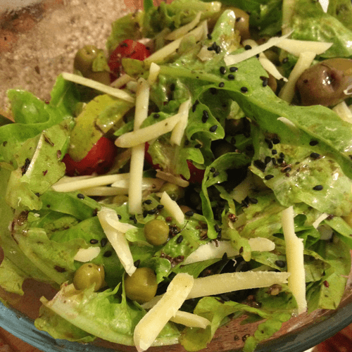 Салат с рукколой, черри и маслинами по-итальянски