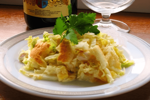 Салат из китайской капусты с курицей и апельсинами – это яркое сочетание свежести, нежности и пикантности. Его корни уходят в европейскую кухню, где ценится баланс вкусов и текстур. Сочная китайская капуста дарит свежесть, копченая куриная грудка – насыщенный вкус, а апельсины добавляют лёгкую кислинку и сладость. Чеснок придаёт пикантность, а майонез объединяет ингредиенты в нежное единство. Финальный штрих – хрустящие сухарики, добавляющие текстурную игру. Этот салат станет отличным вариантом для лёгкого ужина или праздничного стола, радуя гостей неожиданным вкусовым ансамблем.