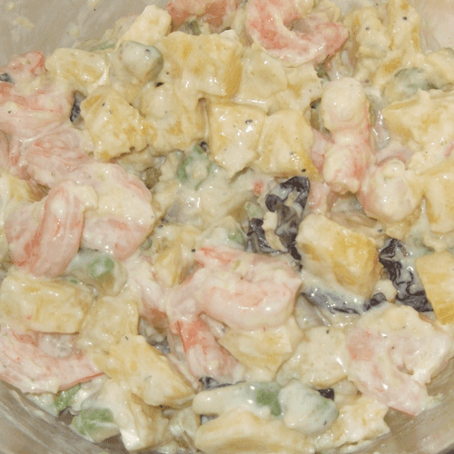 Салат из королевских креветок с ананасом и пармезаном