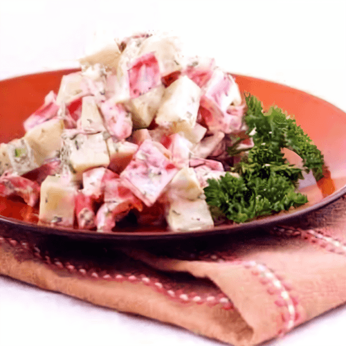 Салат из перца с яблоками – это яркое и освежающее блюдо европейской кухни, которое гармонично сочетает сладость яблок с нежной хрустящей текстурой болгарского перца. Его история уходит корнями в традиции легких летних салатов, где свежие овощи и фрукты объединяются в удивительные вкусовые комбинации. Заправленный сметаной, салат приобретает мягкость и легкую кислинку, а свежая петрушка добавляет нотку пикантности. Охлажденный перед подачей, он становится идеальным гарниром к мясным блюдам или самостоятельным легким перекусом. Простота приготовления и доступность ингредиентов делают этот салат отличным выбором для любого случая — от семейных обедов до изысканных праздничных ужинов.