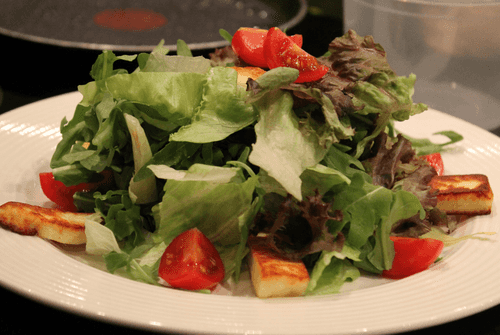 Зеленый салат с сыром, виноградом и кедровыми орешками с винной заправкой