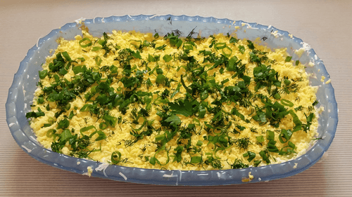 Салат «Мимоза» с картофелем и сайрой — это нежное и сытное блюдо, любимое во многих семьях. Его история уходит в советское прошлое, когда слоеные салаты стали популярны благодаря доступности ингредиентов. Название «Мимоза» он получил из-за своего ярко-желтого верхнего слоя, напоминающего весенний цветок. Вкус этого салата гармоничен: мягкость картофеля, сочность моркови, пикантность лука и насыщенность консервированной сайры создают великолепное сочетание. Слои, пропитанные майонезом, делают его особенно нежным. Салат прекрасно подходит для праздничного стола, как самостоятельное блюдо или дополнение к основным угощениям. Его воздушная текстура и аппетитный вид делают «Мимозу» фаворитом среди традиционных домашних рецептов.