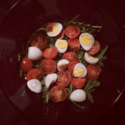 Легкий салат с рукколой и перепелинными яйцами