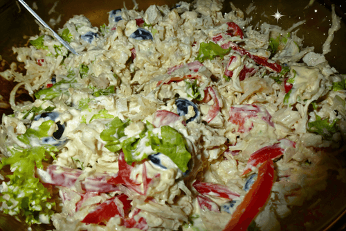 Мексиканский салат с курицей и сладким перцем — это яркое и аппетитное блюдо, отражающее дух мексиканской кухни. В нем сочетаются нежное обжаренное куриное филе, хрустящий сельдерей, свежий сладкий перец и пикантный репчатый лук. Оливки придают блюду легкую соленость, а листья зеленого салата — свежесть и воздушность. Заправка из майонеза и щепотки сахара делает вкус сбалансированным и насыщенным. Этот салат прекрасно подходит как для легкого обеда, так и для праздничного стола. Его можно подать как самостоятельное блюдо или как гарнир к мясу или морепродуктам. Простота приготовления и гармония вкусов делают его идеальным выбором для любителей кулинарных экспериментов.