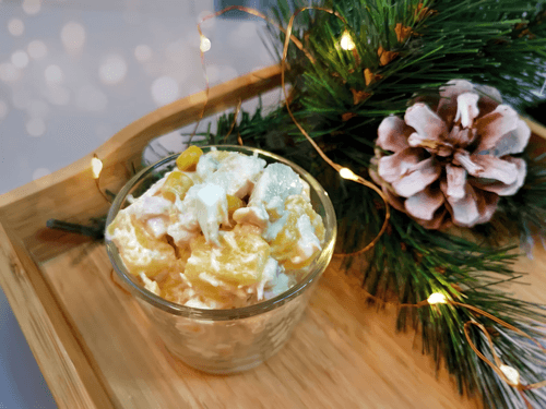 Салат с курицей, сыром и ананасами