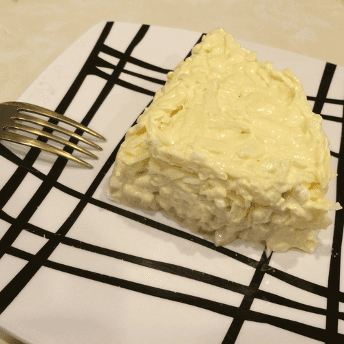 Салат с кальмарами и ананасом — это изысканное сочетание морепродуктов и фруктовой сладости, дарящее неповторимую гармонию вкусов. Нежные кальмары, сваренные до совершенства, мягко дополняются сочными кусочками ананаса, создавая легкую свежесть в каждом укусе. Слои куриных яиц придают блюду мягкость и насыщенность, а сыр маасдам добавляет сливочные нотки, усиливающие общий вкус. Этот салат идеально подходит как для праздничного стола, так и для романтического ужина, удивляя сочетанием простых ингредиентов и утонченного вкуса. Он родился в авторской кухне, где смелые эксперименты привели к созданию блюда, объединяющего морскую элегантность и тропическую нежность. Приятная текстура и баланс соленого, сладкого и сливочного делают его настоящим гастрономическим удовольствием.