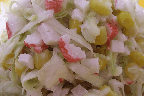 Салат из белокочанной капусты, крабовых палочек и консервированной кукурузы