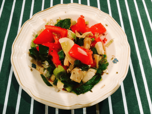 Быстрый салат из маринованных артишоков — это настоящее воплощение свежести и яркости средиземноморской кухни. Артишоки, являющиеся деликатесом с древних времен, добавляют блюду мягкость и легкую кислинку. Сладкие томаты черри, свежая мята и сочный зеленый лук создают гармонию вкусов, подчеркивая легкость и простоту салата. Этот салат не требует долгого приготовления — всего несколько минут, и перед вами восхитительное блюдо, идеально подходящее для летнего обеда или легкой закуски. Он великолепен как самостоятельное угощение, так и в сочетании с рыбой или мясом, придавая им свежий акцент. Листья мяты придают блюду свежий аромат, делая его особенно освежающим. Наслаждайтесь этим быстрым и изысканным салатом в любое время!