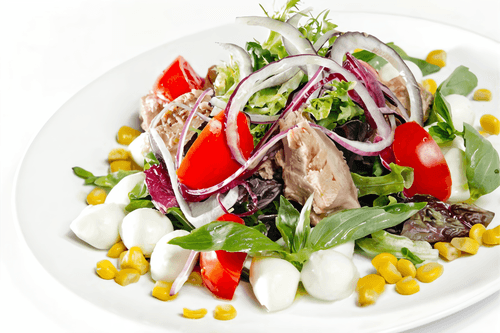 Салат с тунцом и моцареллой — это утонченное сочетание средиземноморских вкусов, соединяющее нежную текстуру сыра моцарелла, насыщенный аромат тунца и свежесть хрустящих салатных листьев. Этот рецепт, вдохновленный европейской кухней, является прекрасным вариантом легкого и питательного блюда. Сладость помидоров черри и сочность зерен кукурузы добавляют приятные акценты, а красный лук вносит пикантную нотку. Заправленный качественным оливковым маслом, этот салат раскрывает свой вкус в полной мере, превращаясь в идеальный выбор для быстрого ужина или легкого перекуса. Подача может быть как самостоятельным блюдом, так и частью праздничного стола, дополняя другие кулинарные изыски. История подобных салатов уходит корнями в традиции средиземноморской кухни, где ценятся свежие продукты и натуральные вкусовые сочетания.