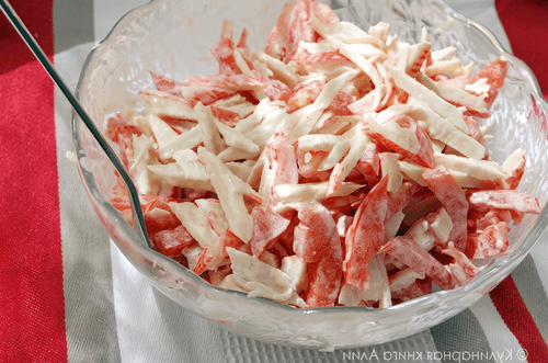 Крабовый салат с помидорами и сладким перцем