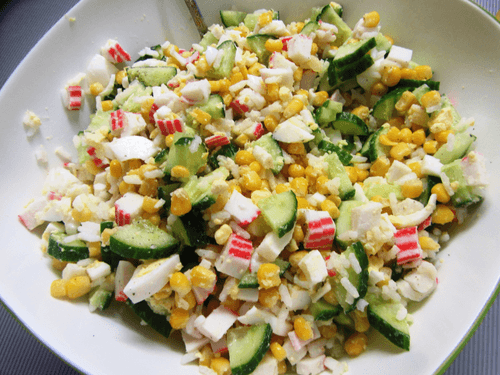 Классический крабовый салат с огурцом