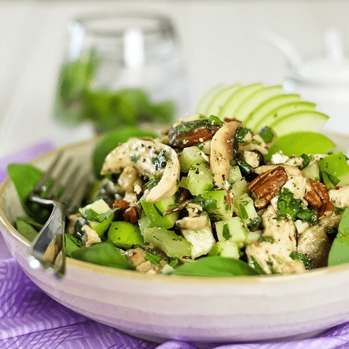 Этот салат с курицей, зелёным яблоком и фетой — настоящая симфония вкусов, в которой свежесть фруктов гармонично сочетается с насыщенной текстурой грибов и солоновато-сливочным оттенком феты. Европейские кулинарные традиции объединяют в этом блюде простоту и утончённость. Легкая кислинка яблока и уксуса в заправке оживляет вкус, а ароматные травы — тимьян и розмарин — добавляют глубину. Шпинат служит прекрасной основой, подчеркивая свежесть и изысканность салата. Это блюдо идеально для лёгкого ужина или праздничного стола, а орехи, которыми его можно дополнительно посыпать, добавляют приятный хруст. Салат не только радует вкусом, но и наполняет энергией, оставаясь при этом лёгким и полезным выбором.