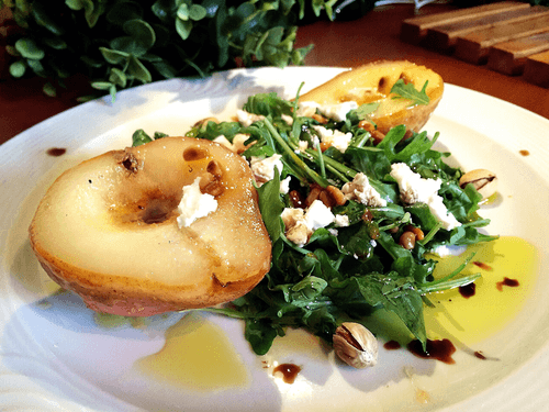 Салат с молодым сыром и карамелизированной грушей