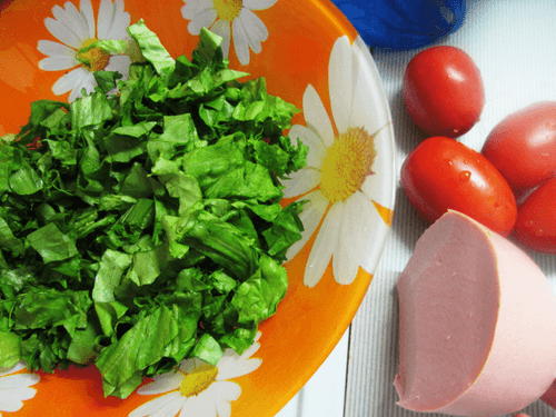 Салат с колбасой и латуком