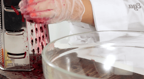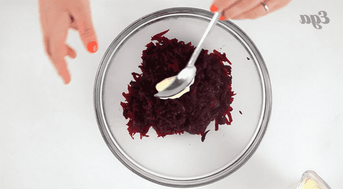 Отварить свеклу до готовности или воспользоваться уже готовой вареной, продающейся в магазинах; натереть свеклу на средней терке.