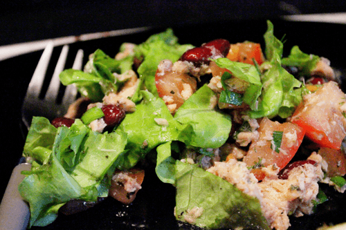 Салат с консервированной горбушей и фасолью