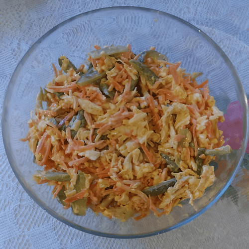 Салат из куриного филе с морковкой по-корейски — это яркое сочетание нежного куриного мяса и пряной, пикантной моркови. Он вобрал в себя элементы европейской кухни, но благодаря моркови по-корейски приобретает восточные нотки. Легкий, но сытный, с приятной хрусткостью маринованных огурцов и мягкостью сыра, этот салат станет отличным дополнением к праздничному столу или повседневному меню. Заправленный чесноком и майонезом, он наполняет вкусовую палитру насыщенными и сбалансированными оттенками. Идеальный вариант для тех, кто любит контрастные вкусы и ароматные блюда.