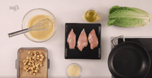 Смешайть в большой миске куриные грудки с оливковым маслом и 1 столовую ложку лимонного сока, затем посолить.