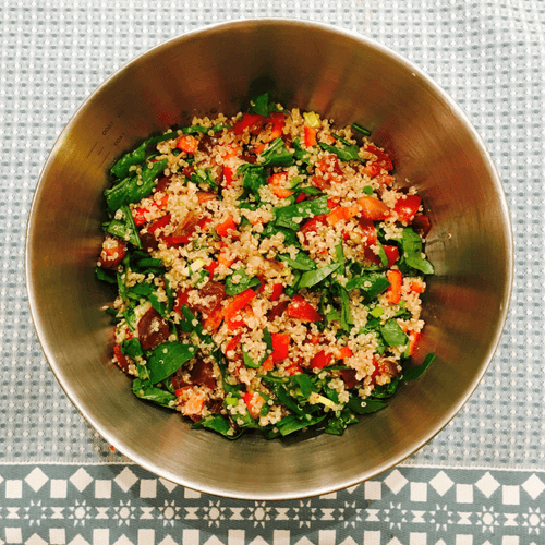 Салат из киноа со щавелем и овощами