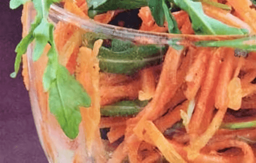 Салат с рукколой, морковью, огурцом, зелёным луком и семечками