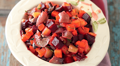 Винегрет с маринованными грибами по-старорусски – это классическое блюдо русской кухни, которое вобрало в себя традиции и вкусы прошлого. Свекла, картофель и маринованные грузди создают гармоничное сочетание землистых и пикантных нот, дополняемых остротой горчицы и нежностью оливкового масла. Это блюдо идеально подходит как для праздничного застолья, так и для повседневного ужина, радуя своей простотой и насыщенным вкусом. Заправка на основе уксуса придаёт винегрету освежающий оттенок, а зеленый лук добавляет легкую пикантность. В старину такой винегрет подавали в домах знатных дворян и простых крестьян, ценя его за питательность и доступность. Сегодня этот салат остаётся символом русской гостеприимности и любви к простым, но изысканным рецептам.
