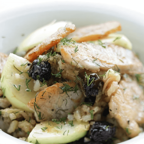 Этот салат с индейкой, яблоком и мятой — настоящее воплощение свежести и гармонии вкусов. Его корни уходят в современную американскую кухню, где сочетаются полезные продукты и интересные вкусовые акценты. Нежное мясо индейки, обжаренное до золотистости, дополняется сладковатым изюмом и карамелизированным луком, создавая богатый аромат. А освежающая мята и хрустящее яблоко привносят нотки лёгкости. Итальянские травы и пикантная заправка из соевого соуса с оливковым маслом добавляют блюду глубину вкуса. Этот салат идеально подходит как для лёгкого ужина, так и для праздничного стола — он удивляет контрастами, радует балансом ингредиентов и оставляет приятное послевкусие.