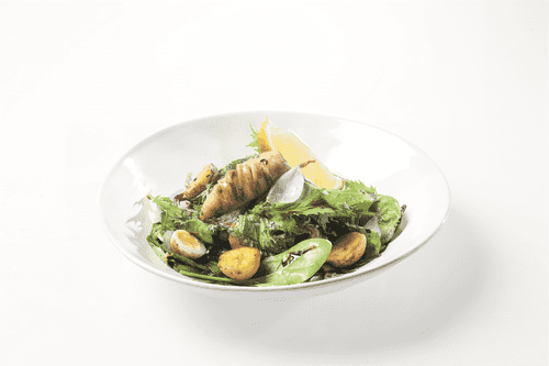 Салат с кальмарами и перепелиными яйцами