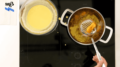 Темпуру смешать с водой в пропорции 1/1, добавить куркуму. Консистенция должна быть похожа на тесто для блинов.