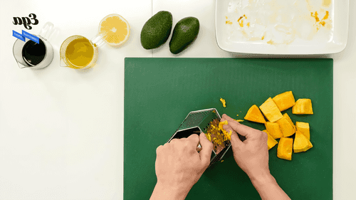 Авокадо избавить от косточки и кожи, натереть на крупной терке. Затем смешать с соком половинки лимона, каплей оливкового масла, солью и перцем.