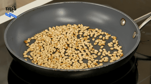 Печеную тыкву натереть на крупной терке, добавить к ней оливковое масло соль, перец и половину орехов.
