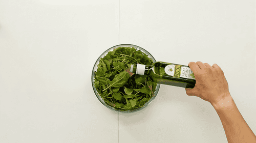 Нарезанные овощи смешать с соусом, добавить обжаренный кунжут. В отдельной посуде заправить салатные листья оливковым маслом, солью и перцем.