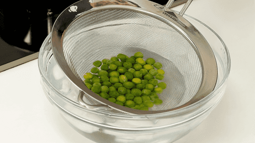 Горошек припустить на огне с 15 мл воды, щепоткой сахара, около минуты.