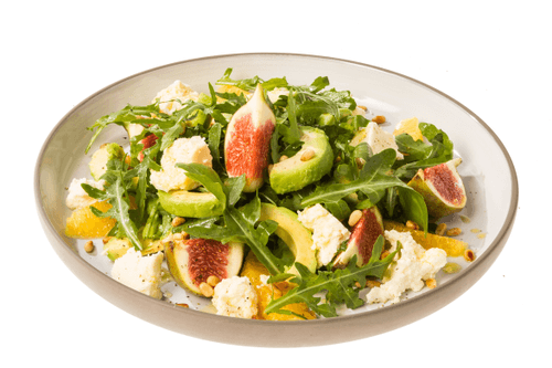 Этот салат — гармоничное сочетание свежих, насыщенных вкусов Европы. Нежный инжир придаёт ему естественную сладость, а кремовый авокадо добавляет бархатистую текстуру. Фермерский сыр дарит богатый молочный вкус, а кедровые орехи добавляют ореховую хрустящесть. Апельсиновая заправка с рисовым уксусом создаёт освежающее цитрусовое послевкусие. Это блюдо подходит как лёгкий обед или изысканная закуска, подчёркивающая натуральные ингредиенты. Вдохновлённый средиземноморскими традициями, он прекрасно дополняет винную карту и украсит любой стол своей элегантностью и цветовым контрастом.