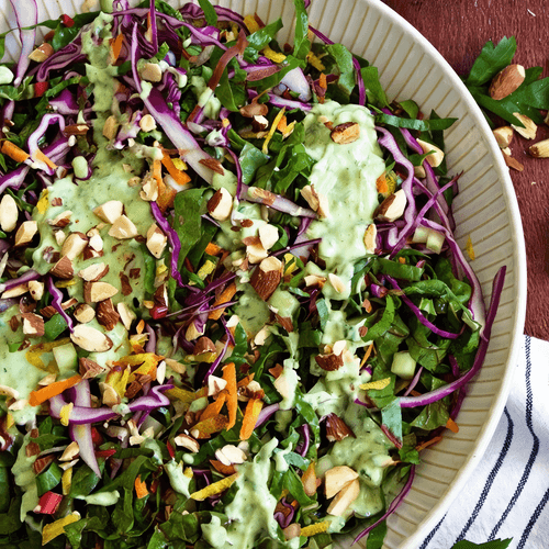 Салат из мангольда и капусты — это свежий, яркий и питательный вариант итальянской кухни, который сочетает в себе хрустящую текстуру капусты, нежность мангольда и сладковатый оттенок моркови. Этот салат дополняют огурцы, придающие сочность, а жареный миндаль — легкую ореховую нотку. Заправленный сметаной, майонезом и лимонным соком, он приобретает баланс свежести и насыщенности вкуса. Петрушка добавляет пряность, а рыбный соус — тонкий умами-акцент. Такой салат идеально подходит как легкая закуска или гарнир к мясным и рыбным блюдам. Истоки этого рецепта восходят к традиционным итальянским деревенским салатам, где свежие овощи и ароматные добавки создают гармонию вкусов. Это простое, но элегантное блюдо радует глаз и дарит заряд бодрости!