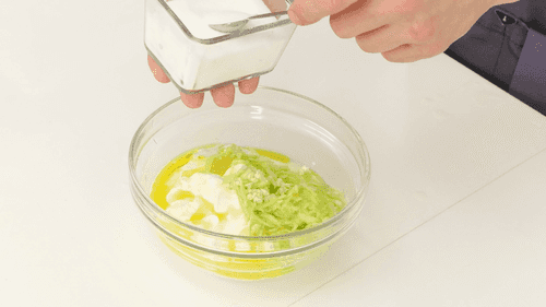 Смешать тертые огурцы с оставшимся йогуртом, 15 мл лимонного сока, столовой ложкой масла, зубчиком тертого чеснока, половиной чайной ложки соли и черным перцем.