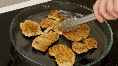 Разогреть гриль, смазать маслом и пожарить маринованное мясо с обеих сторон до хорошего румянца. По 4–5 минут с каждой стороны. Готовое мясо нарезать на полоски.