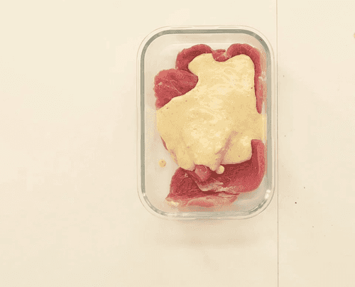 Свинину нарезать кусками толщиной около 3 см, отбить их и покрыть маринадом, накрыть пленкой и убрать в холодильник минимум на час.
