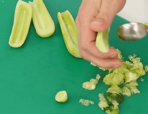 Для соуса два огурца очистить от кожуры, разрезать их пополам, ложкой удалить семена и натереть на крупной терке. Переложить их на бумажные полотенца и отжать, чтобы избавиться от лишней влаги.