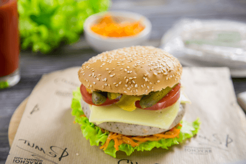 Бургер с колбасками — это оригинальная интерпретация классического американского фастфуда, дополненная насыщенными вкусами. Колбаски, обжаренные до золотистой корочки, придают блюду пикантность, а свежие овощи — хрустящую текстуру. Маасдам добавляет сливочные нотки, идеально сочетающиеся с сочными томатами и маринованными корнишонами. Особенностью этого бургера является использование моркови по-корейски, которая придаёт лёгкую остроту и делает вкус многогранным. Поджаренная булочка с лёгким ароматом гриля соединяет все ингредиенты воедино. Такой бургер станет отличным вариантом для уютного семейного ужина или пикника, где сочные мясные нотки и свежесть овощей создают гармонию вкусов.