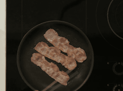Поджарить бекон на сковороде без масла до румяной корочки.