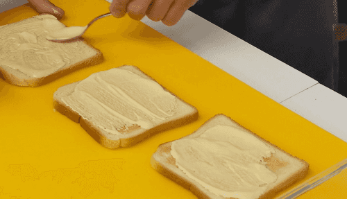 Смазать этим соусом одну сторону каждого кусочка хлеба, используя около одной чайной ложки соуса на кусок.