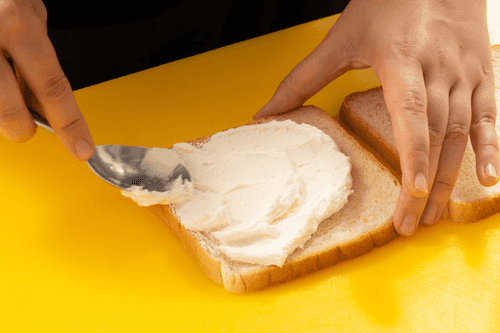 Половину хлебных ломтиков смазать толстым слоем сырной смеси.